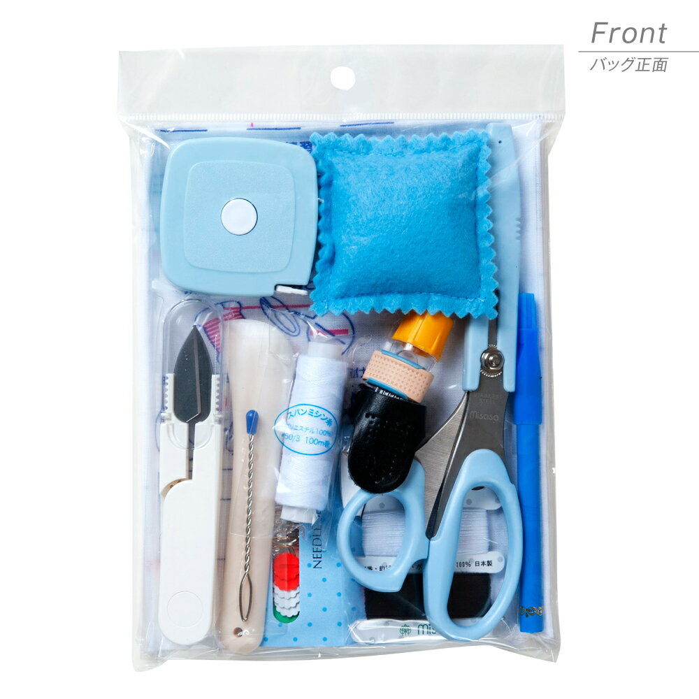 【裁縫セット ヘッダー付袋入 ブルー】 ■商品詳細 裁縫道具は14点入り ※裁縫の道具のみのセットとなります。